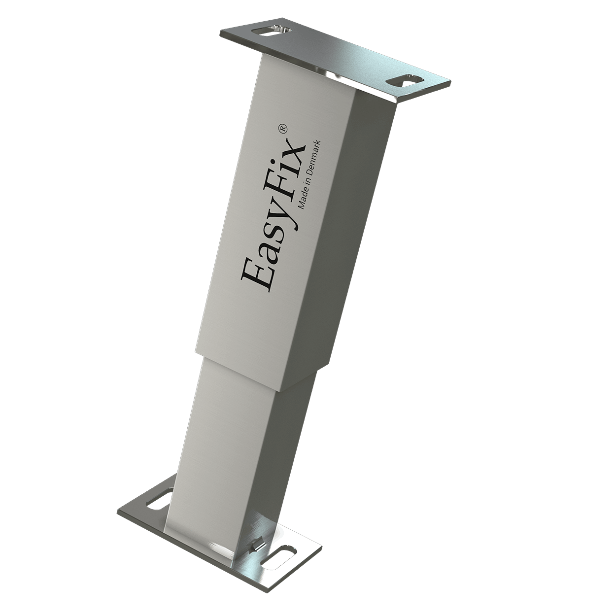 Den største fordel ved EasyFix® er, at monteringsprocessen er nem og hurtig, da søjlen let kan finjusteres i højden – med de medfølgende 11 stk. afstandsklodser – også selvom underlaget, hvorpå stolpen står, ikke er helt plant.